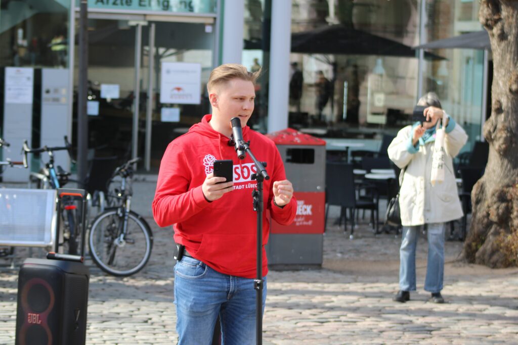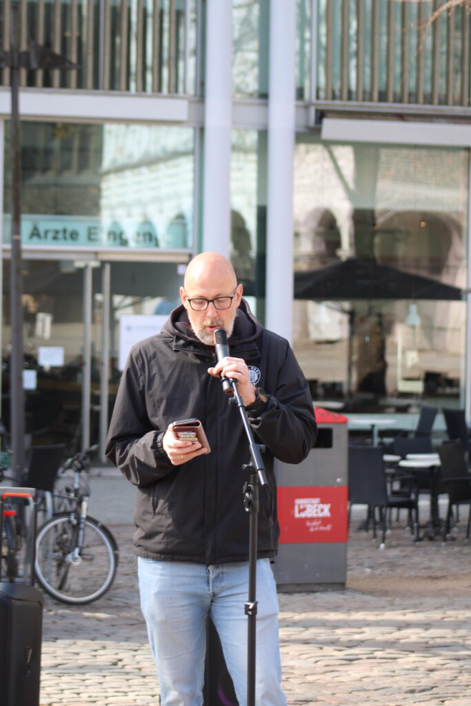 Für die Lübecker Jusos gab Sascha Beth ein Statement ab – wie auch Helmut Müller-Lornsen von der Lübecker Bürgerschaftsfraktion der Grünen.