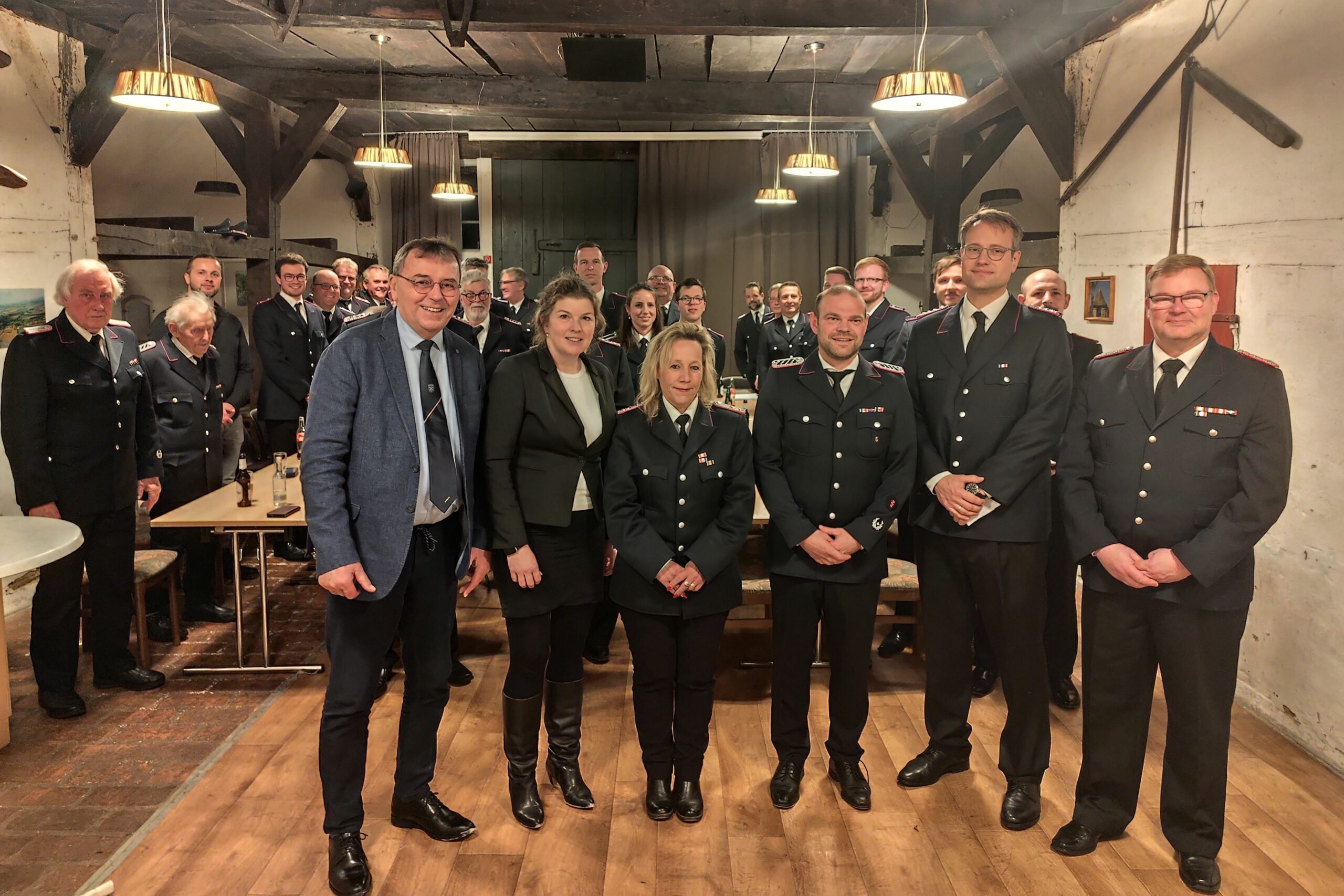 Neben den Kameradinnen und Kameraden freute sich die Ortswehrführerin auch über den Besuch zahlreicher Gäste aus Politik und Verwaltung. Bürgermeisterin Julia Samtleben, Bürgervorsteher Manfred Beckmann, der zuständige Fachbereichsleiter Bürgerdienste Stefan Köhler sowie Gemeindewehrführer Lars Schöppich unterstrichen mit ihrer Teilnahme die Wertschätzung für die ehrenamtliche Arbeit der Feuerwehr.