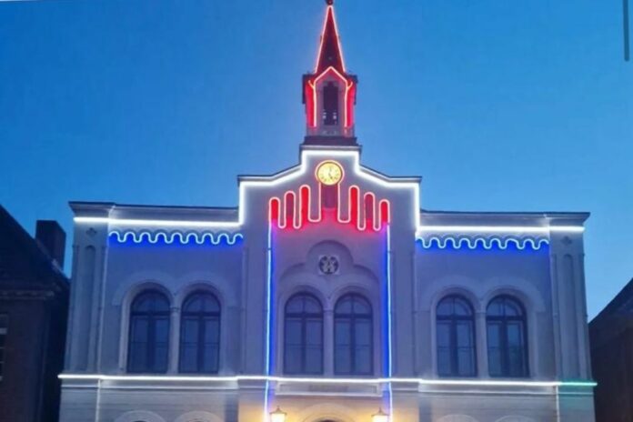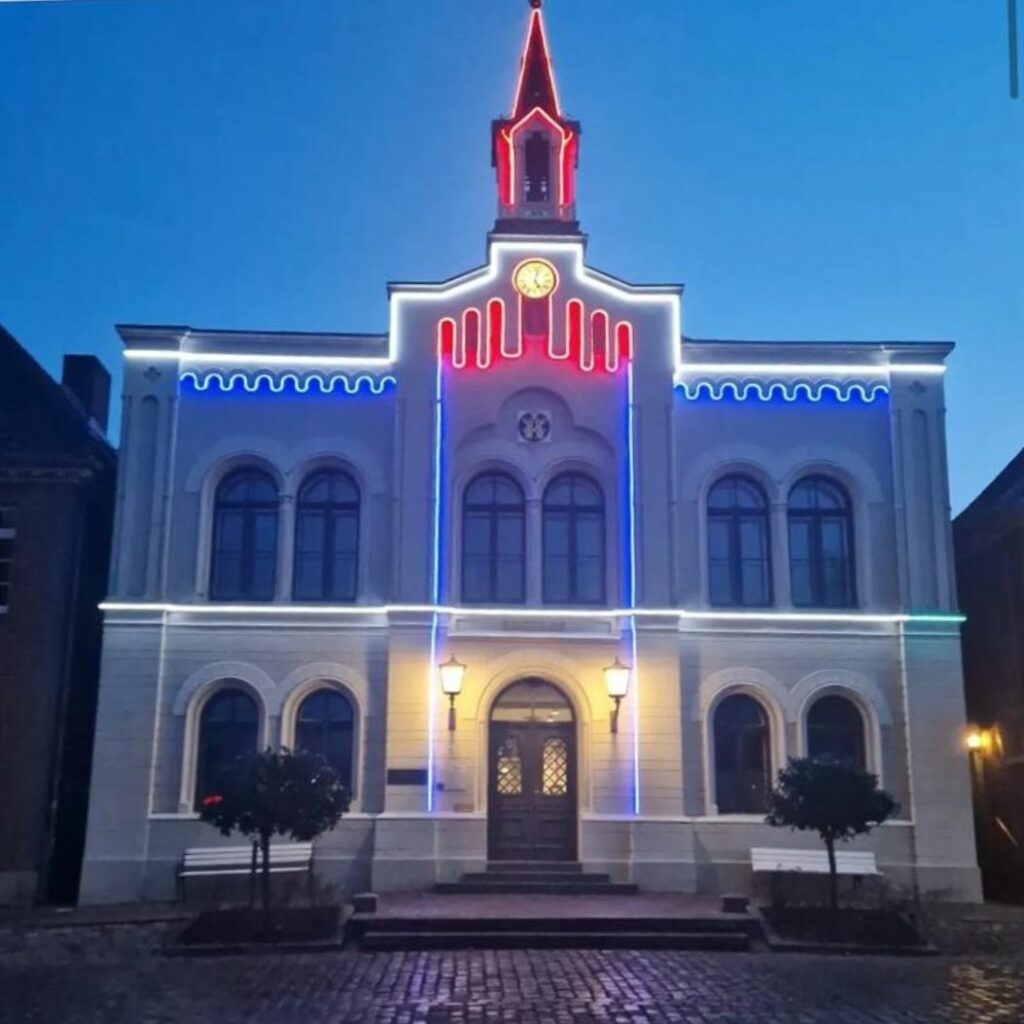 Das Oldenburger Rathaus erstrahlte deshalb in den Farben der französischen Trikolore und auch die Flagge der