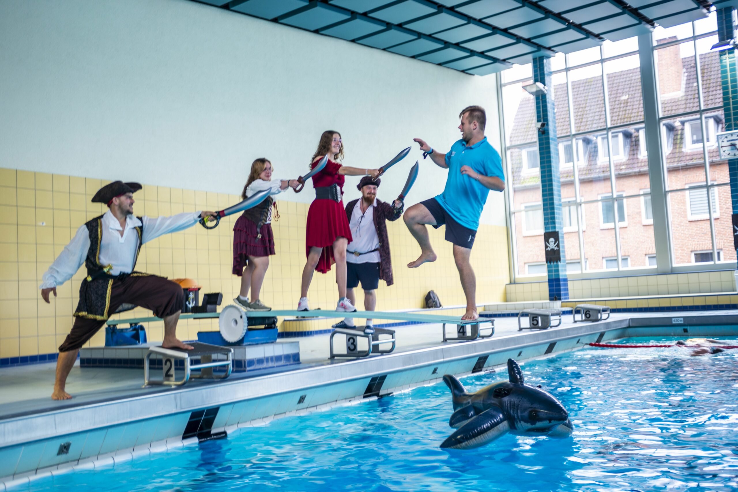Lübeck – Unter dem Motto „Meuterei auf hoher See“ verwandelt sich das Zentralbad in Lübeck (Schmiedestraße 5-7, 23552 Lübeck) am Sonntag, 16. November, in eine stürmische Piratenwelt, in der kleine und große Wasserfreunde von 12.30 Uhr bis 17 Uhr zu mutigen Seeräubern werden können. Die Gäste erwartet ein buntes Programm mit spannenden Aktionen: