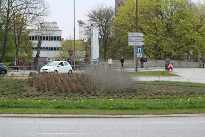 „Der heutige Kreisverkehr am Lindenplatz entspricht in seiner bisherigen Form nicht mehr den geltenden rechtlichen und verkehrstechnischen Anforderungen. Insbesondere die Führung des Radverkehrs in dem mehrspurigen Kreisverkehr ist nach heutigen Regelwerken nicht zulässig. Gleichzeitig zählt der Lindenplatz seit Jahren zu den auffälligsten Unfallschwerpunkten in Lübeck“, heißt es in einer Mitteilung der Hansestadt Lübeck. (PM Hansestadt Lübeck)