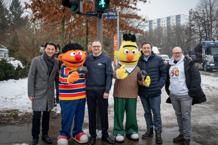 Hamburg – Die Sesamstraße kommt auf Hamburgs Straßen: In unmittelbarer Nähe zu den Hamburger NDR-Standorten erhalten Fußgängerampeln ab sofort ein besonderes Design in Sesamstraßen-Optik. Dort heißt es nun: „Bei Bert bleibst du stehen, bei Ernie kannst du gehen.“