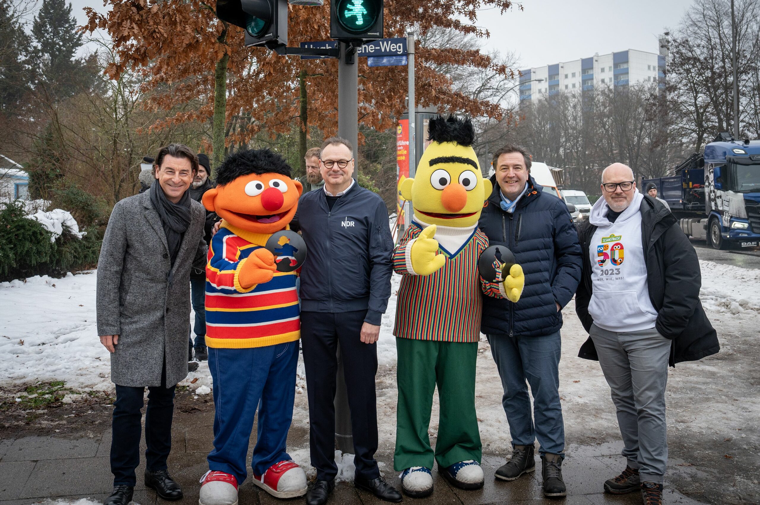 Hendrik Lünenborg, NDR Intendant: “Mit Ernie und Bert als Ampelmännchen wird jede Straßenüberquerung zur liebevollen Erinnerung an die wichtigste Straße unserer Kindheit. Wir im NDR freuen uns, dass Generationen von Zuschauern nun auch im Straßenverkehr auf alte Freunde treffen.“